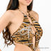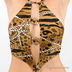 Стильный купальник-монокини оригинального дизайна с леопардовым принтом на актуальную в этом сезоне тему "сафари". Лиф фиксируется при помощи застежки на спине и завязки вокруг шеи. Чашечки с плотными съемными вставками соединены двумя кольцами и завязкой вокруг шеи. Низ чашечек имеет удлиненную форму и соединяется при помощи еще одного кольца с плавками. Плавки с закрытыми ягодицами. Такой купальник не оставит окружающих равнодушными и подчеркнет красоту Вашей фигуры!