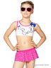 Новинка сезона Модный купальник, состоящий из двух предметов. Классический топ с широкими бретелями фиксируется на спине застёжкой из цветного пластика. Плавки с оригинальной мини-юбкой имеют комфортную посадку. Банты, подвеска "Мишутка" и сочетание принтов-компаньонов подчёркивают неповторимый стиль.