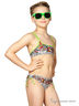 Модный раздельный купальник для девочек школьного возраста. Ассиметричный топ, одна сторона которого украшена декоративным кольцом, удерживающим двойную бретель, а другая сторона поддерживается одинарной тонкой бретелью. Топ фиксируется на спине удобной застёжкой. Плавки комфортной посадки с оригинальными шнурами-спагетти, собранными в кольцо на боковых деталях изделия для регулировки высоты бочка. Эффектный принт "Экзотические бабочки" выполнен сложным способом детального размещения рисунка.