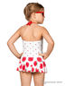 Новая модель Модный слитный купальник для девочек. Изделие с маленькой юбкой-воланом и тонкими контрастными завязками на шее декорировано изысканной драпировкой по передней детали и объёмной аппликацией "Маки".