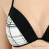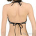 Оригинальный купальник из тонкого эластичного материала. Бюстгальтер с поролоновой чашкой. Завязывается через шею и на спине, дополнен кармашками для поролоновых вкладышей. Трусы слипы декорированы контрастной вставкой и металлической деталью.
