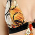 Оригинальный купальник из тонкого эластичного материала. Бюстгальтер с поролоновой чашкой. Завязывается через шею и на спине. Трусы слипы с отворотом. Купальник декорирован оригинальным принтом, на бюстгальтере стильные подвески.