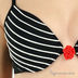 Оригинальный купальник из тонкого фактурного эластичного материала. Бюстгальтер на косточках с поролоновой чашкой. На спине металлическая застежка. Тонкие бретели регулируются по длине. Трусы слипы. Купальник декорирован контрастными тканевыми цветами.