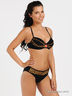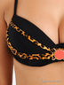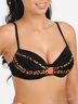 Оригинальный купальник из тонкого эластичного материала. Бюстгальтер на косточках с поролоновой чашкой, дополнен съемными вкладышами с эффектом push up. Застегивается сзади на металлическую застежку, бретели регулируются по длине. Трусы слипы, пройма и пояс на резинке. Купальник декорирован вставками с оригинальным принтом, на бюстгальтере металлический элемент.