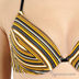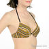 Оригинальный купальник из тонкого эластичного материала. Бюстгальтер на косточках с поролоновой чашкой. Завязывается через шею, на спине металлическая застежка, дополнен кармашками для поролоновых вкладышей. Трусы слипы дополнены вставками и завязками по бокам. Купальник декорирован оригинальным принтом - полоска.