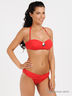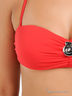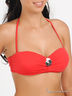 Оригинальный купальник из тонкого эластичного материала. Бюстгальтер балконет на косточках с поролоновой чашкой. Завязывается на спине и через шею на съемную завязку, дополнен кармашками для поролоновых вкладышей. Трусы слипы с драпировкой на передней части. На бюстгальтере декоративный металлический элемент.