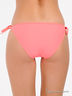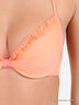 Оригинальный купальник из тонкого эластичного материала. Бюстгальтер на косточках с поролоновой чашкой, дополнен карманами для съемного уплотнителя. Завязывается на спине и через шею. Трусы слипы. Купальник декорирован рюшами.