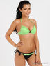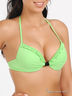Оригинальный купальник из тонкого эластичного материала. Бюстгальтер на косточках с поролоновой чашкой, дополнен карманами для съемного уплотнителя. Завязывается на спине и через шею. Трусы слипы. Купальник декорирован рюшами.