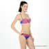 Оригинальный купальник из тонкого эластичного материала. Бюстгальтер балконет на косточках с поролоновой чашкой. Съемная завязка через шею, на спине металлическая застежка, дополнен кармашками для поролоновых вкладышей. Трусы слипы. Купальник декорирован оригинальным принтом, на бюстгальтере брелок.