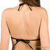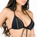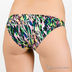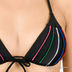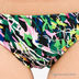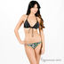 Этот купальный костюм состоит из лифа с оригинальным декором в виде рельефных разноцветных швов и плавок с пестрым принтом. Лиф с формованными чашечками Push-up и съемными поролоновыми вкладышами завязывается на шее и на спине. Треугольные чашечки соединены между собой полоской ткани в виде бантика, что позволит регулировать расстояние между ними. Плавки с заниженной линией талии и закрытыми ягодицами.
