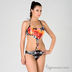 Яркий слитный купальник-монокини продемонстрирует Вашу привлекательную фигуру! Топ с завязками на шее и застежкой на спине соединен с плавками спереди декоративными полосками ткани и пластиковым кольцом. Топ также оснащен съемными тонкими, но плотными вкладышами.