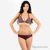 Стильный купальник с мягкими чашечками треугольной формы. Внутри чашечек - съемные плотные и непромокаемые вкладыши, придающие груди красивую форму. Лиф завязывается на спине и на шее. Плавки с заниженной линией талии, закрытыми ягодицами и завязками по бокам. Декор чашечек и плавок выполнен из мелких железных клепок и страз.