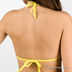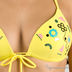 Яркий купальник с формованными чашечками Push-up и поролоновыми вшитыми вкладышами. Чашечки треугольной формы, декорированные стразами и разноцветной аппликацией, соединены полоской ткани в виде бантика, что позволит Вам корректировать расстояние между ними. Лиф с завязками на шее и спине. Плавки на боковых завязках.