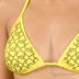 Яркий и стильный купальник с мягкими чашечками треугольной формы. Внутри чашечек - съемные плотные и непромокаемые вкладыши, придающие груди красивую форму. Лиф завязывается на спине и на шее. Плавки с заниженной линией талии, закрытыми ягодицами и завязками по бокам. Декор чашечек и плавок выполнен из мелких железных клепок и страз.
