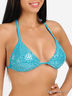 Элегантный купальник. Бюстгальтер-шторка с уплотненными чашечками со съемным пуш-апом, бретели завязываются на шее и на спине. Трусики-танга средней посадки со шнурками. Изделие декорировано голографическим напылением.