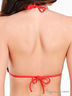 Элегантный купальник. Бюстгальтер-шторка с уплотненными чашечками со съемным пуш-апом, бретели завязываются на шее и на спине. Трусики-танга средней посадки с лентами по бокам. Изделие декорировано декоративными вставками со стразами.