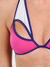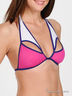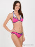 Элегантный раздельный купальник из тонкой эластичной ткани с благородным лоском. Лиф с мягкими треугольными чашечками на тонких на тонких бретелях, завязывающихся на спине и на шее. Трусики-танга средней посадки.