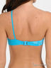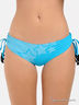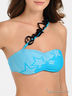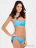 Раздельный купальник из тонкого эластичного материала. Лиф-бандо застегивается на металлическую застежку сзади, дополнен диагональной бретелью со съемным декоративным элементом. Трусы слипы - пояс и проймы на резинке, по бокам кулиски со шнурком и декоративными элементами. Купальник декорирован оригинальными аппликациями в виде надписей.