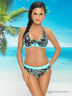 Замечательное бикини, выполненное из эластичного материала, оформленного абстрактным рисунком. Модель имеет комфортный крой. Мягкая чашка на косточках, бретели регулируются, с металлической застежкой на спине, плавки слип. Отличный вариант для пляжного гардероба.