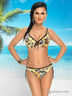 Замечательное бикини, выполненное из эластичного материала, оформленного абстрактным рисунком. Модель имеет комфортный крой. Мягкая чашка на косточках, бретели регулируются, с металлической застежкой на спине, плавки слип. Отличный вариант для пляжного гардероба.