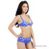 Оригинальный купальник из тонкого эластичного материала. Бюстгальтер на косточках с поролоновой чашкой. Застегивается сзади на металлическую застежку, несъемные бретели регулируются по длине. Декорирован оригинальным принтом. Трусы бразильяны с вертикальным швом сзади, дополнены шлевками в которые продет пояс с принтом.