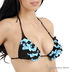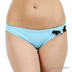 Оригинальный купальник из тонкого эластичного материала. Бюстгальтер с "чашками-шторками" со съемным поролоновым уплотнителем. Завязывается на эластичные ленты через шею и на спине. Трусы слипы и бюстгальтер декорированы оригинальными нашивками в форме тканевых цветов.
