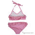 Раздельный купальник с рюшами на трусиках и лифе, фрагментальной вышивкой пайетками.
