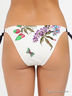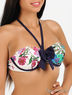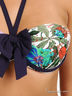Элегантный купальник. Бюстгальтер на косточках с уплотненными чашечками, бретели завязываются на шее, на спине металлическая застежка. Декорирован бантом, плетеной лентой и стразами. Трусики-танга средней посадки декорированы плетеной лентой.