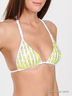 Элегантный раздельный купальник из тонкой эластичной ткани с благородным лоском. Декорирован пайетками. Лиф-шторка с мягкими подвижными чашечками с кармашками для съемного уплотнителя на тонких бретелях, завязывающихся на шее и на спине. Трусики-танга низкой посадки с завязками по бокам.