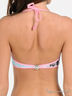 Раздельный купальник из тонкого эластичного материала. Бюстгальтер на косточках с поролоновой чашкой завязывается через шею, на спине металлическая застежка. Трусы слипы - пояс и пройма на резинке. Купальник декорирован оригинальным принтом.