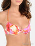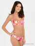 Раздельный купальник из тонкого эластичного материала. Бюстгальтер на косточках с поролоновой чашкой завязывается через шею на скрученную тесьму, застегивается на металлическую застежку на спине. Трусы слипы - пояс и пройма на резинке. Купальник декорирован оригинальным ярким принтом.