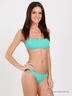 Элегантный раздельный купальник из тонкой эластичной ткани. Лиф-бандо с мягкими чашечками на тонких съемных бретелях, завязывающихся на шее и на спине. Трусики-танга низкой посадки.