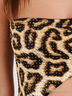 Оригинальный слитный купальник без чашечек с тонкими бретелями, завязывающимися на шее. Декорирован металлизированными стразами.