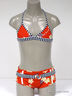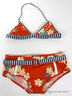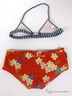 Раздельный купальник с ярким рисунком. Бюстгальтер с логотипом спереди завязывается на шее и застегивается на спине. Плавки-шорты с декоративным поясом и пряжкой спереди и логотипом сзади. Размер по росту в см.