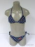 Раздельный купальник. Бюстгальтер с завязками на шее и сзади и логотипом спереди. Плавки с боковыми завязками и логотипом сзади. Размер по росту в см.