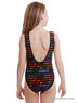 Цельный купальник с круглым вырезом горловины спереди и глубоким овальным вырезом сзади. Широкие бретели. Логотип спереди. Размер по росту в см.