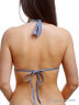 Бюстгальтер от купальника с треугольными чашечками. Завязки на шее и сзади. Металлический кулон в виде букв LM сбоку.
