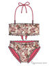 Детский раздельный купальник. Топ - бандо на тонких бретелях и платочной завязкой на спине, украшенный нежно-розовыми стразами. Плавки классической посадки с широким боком также украшены стразами. Купальник обработан густым оверлоком, с добавлением силиконовой ленты.