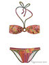 Детский раздельный купальник. Бюст – бандо, со съемной бретелью-петлей через шею и застежкой на спине. Две половинки бюста объединены по центру оригинальным кольцом. Мягкие боковые кости обеспечивают идеальную посадку бюста на теле. Классические плавки со средним боком.