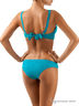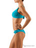 Оригинальный раздельный купальник. Бюст — мягкие чашки со вставками из тонкого поролона на бретелях, которые можно завязывать на шее, с дополнительной поддержкой в виде боковой кости. С изящными завязками на спине, позволяющими самостоятельно регулировать объем. Бюст украшен эффектной драпировкой по центру. Плавки классической посадки с драпированным поясом и эффектной брошью-пауком, инкрустированной стразами. Модель выполнена из новейшей итальянской ткани Eurojersey Sensitive Leather, которая создает эффект замши.