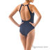 Слитный купальник с плотной чашкой. Купальник украшен по горловине черными камнями.