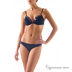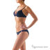 Раздельный купальник с жесткой чашкой. Бюст и плавки украшены камнями фиолетового цвета.