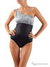 Эффектный слитный купальник с аристократично подчеркнутой линией груди на одной изящной бретели, с дополнительной поддержкой в виде боковой кости. Верх купальника украшен оригинальной драпировкой, визуально увеличивающей линию декольте. Выполнен из новой итальянской ткани 2012 года Jersy Lomellina Glamour, которая обладает водоотталкивающем эффектом, быстро сохнет и имеет благородный блеск.