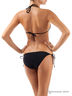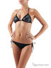 Ослепительный раздельный купальник. Бюст — подвижные треугольники из тонкого поролона, фиксируется завязками на шее и спине. Плавки-бикини низкой посадки на тонких завязках по бокам. Купальник выполнен из итальянской ткани Eurojersey, декорирован оригинальной аппликацией в стиле «glam rock».