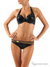 Роскошный раздельный купальник. Формованные чашки с встроенным корректором на каркасе и усиленным эффектом push-up, плавно переходящие в галстучные завязки. Фиксируется элегантной застежкой на спинке. Плавки классической посадки с контрастным драпированным поясом по линии талии, украшены золотистой пряжкой. Купальник выполнен из новой итальянской ткани 2012 года Jersy Lomellina Glamour, которая обладает водоотталкивающем эффектом, быстро сохнет и имеет благородный блеск.