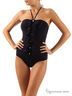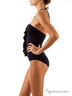 Изящный слитный купальник-бандо с дополнительной силиконовой поддержкой по краю линии груди, фиксируется тонкими завязками на шее, декорирован кокетливыми воланами и изящными миниатюрными пуговицами в стиле кубинских национальных костюмов. Купальник выполнен из итальянской ткани Eurojersey, которая не теряет своих качеств в соленой и хлорированной воде.