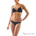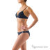 Раздельный купальник с жесткой чашкой. Бюст и плавки украшены камнями черного цвета.