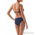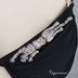 Раздельный купальник с драпированной плотной чашкой, украшенный брошью в виде пантеры из страз. Плавки с драпировкой высокой посадки.