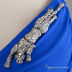 Раздельный купальник с драпированной плотной чашкой, украшенный брошью в виде пантеры из страз. Плавки с драпировкой высокой посадки.