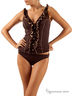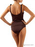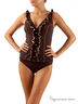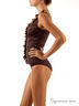 Дамский купальник-танкини. Удлиненный топ спереди декорирован кокетливыми воланами и изящными миниатюрными пуговицами в стиле кубинских национальных костюмов. По задней детали топ украшен глубоким вырезом. Классические плавки с узким боком. Купальник выполнен из итальянской ткани Eurojersey, которая не теряет своих качеств в соленой и хлорированной воде.